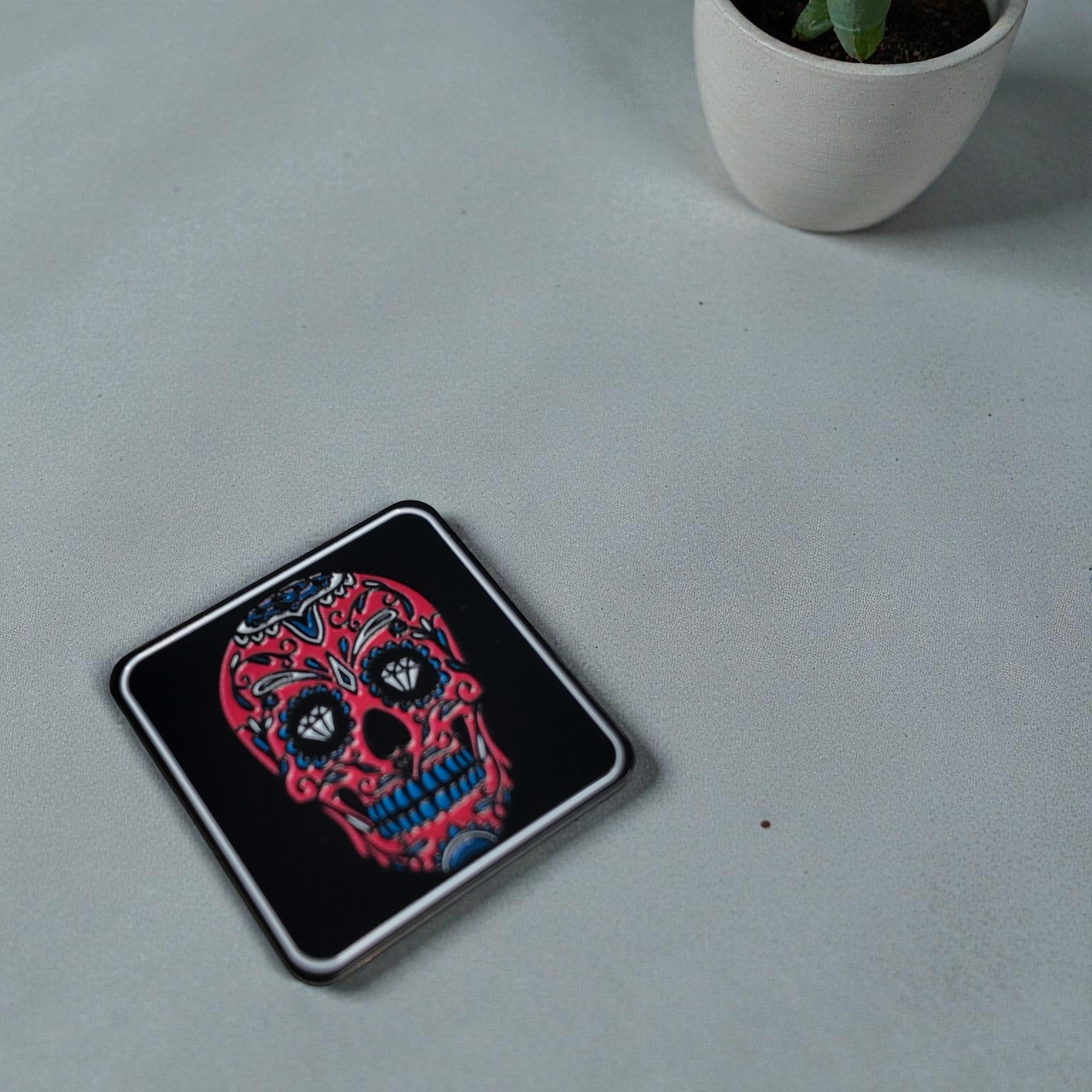• Double-sided: bold red candy skull artwork on one side, iconic HARG logo on the other