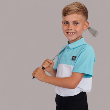 HARG Junior Comfort Fit Golf Polo - Sky Blue / Chalk White